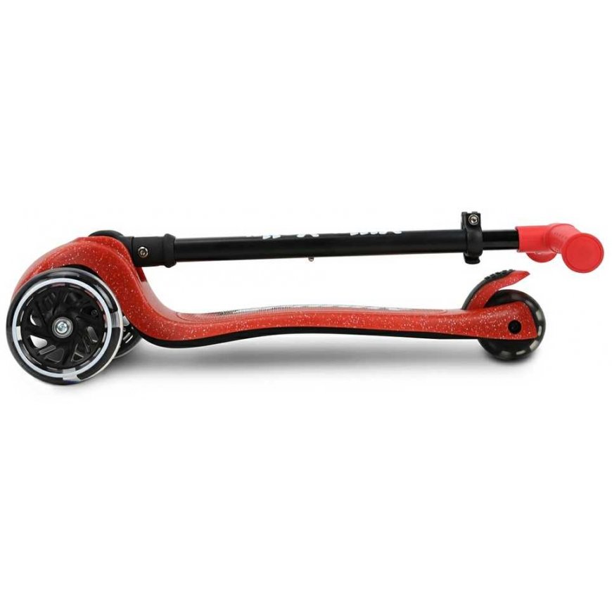 SPARKY impresses not only with its functionality, but also with its appearance! The front wheels shine while driving thanks to built-in LEDs, and additional platform lighting and longitudinal lines on the sides make every ride even more impressive. The bright glitter finish makes the scooter sparkle in the sun.