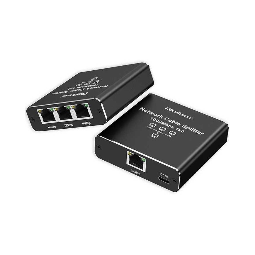 Qoltec splitter allows you to split a single network cable signal into three RJ45 outputs, maintaining a data transfer rate of up to 1000 Mbps. Power supply from the USB port ensures additional connection stability at a distance of up to 100 m. Aluminum housing, gold-plated connectors and reinforced printed circuit board. No need to install additional software, just connect the network cable. Discover all the possibilities of your network - smooth connection up to 100 m.