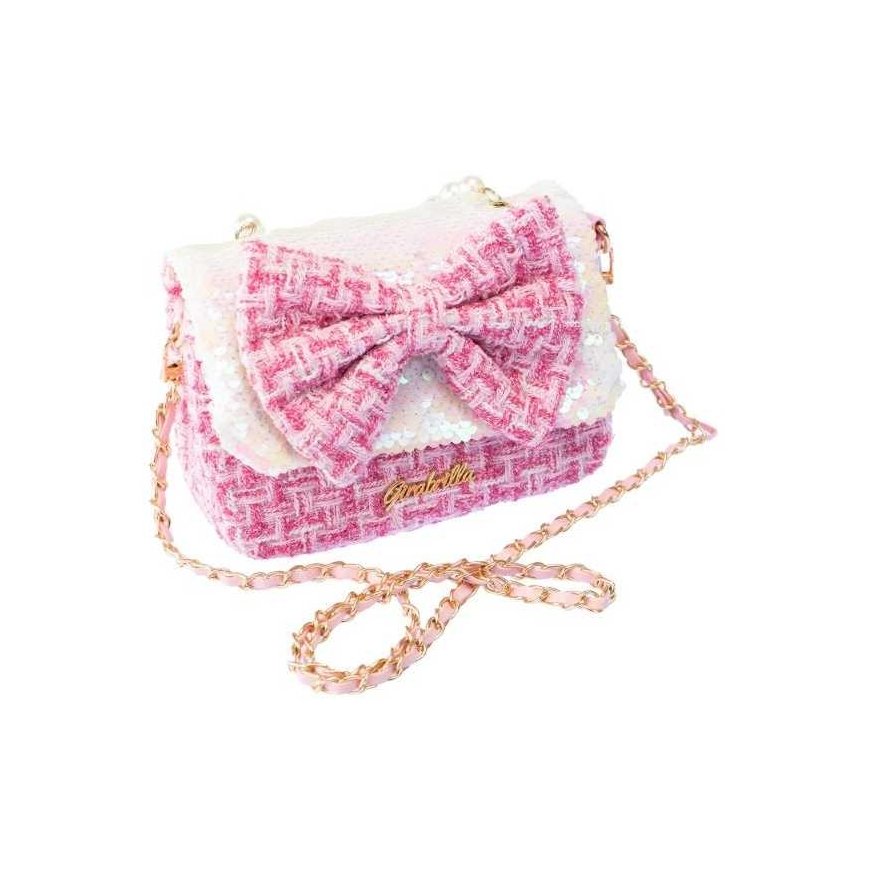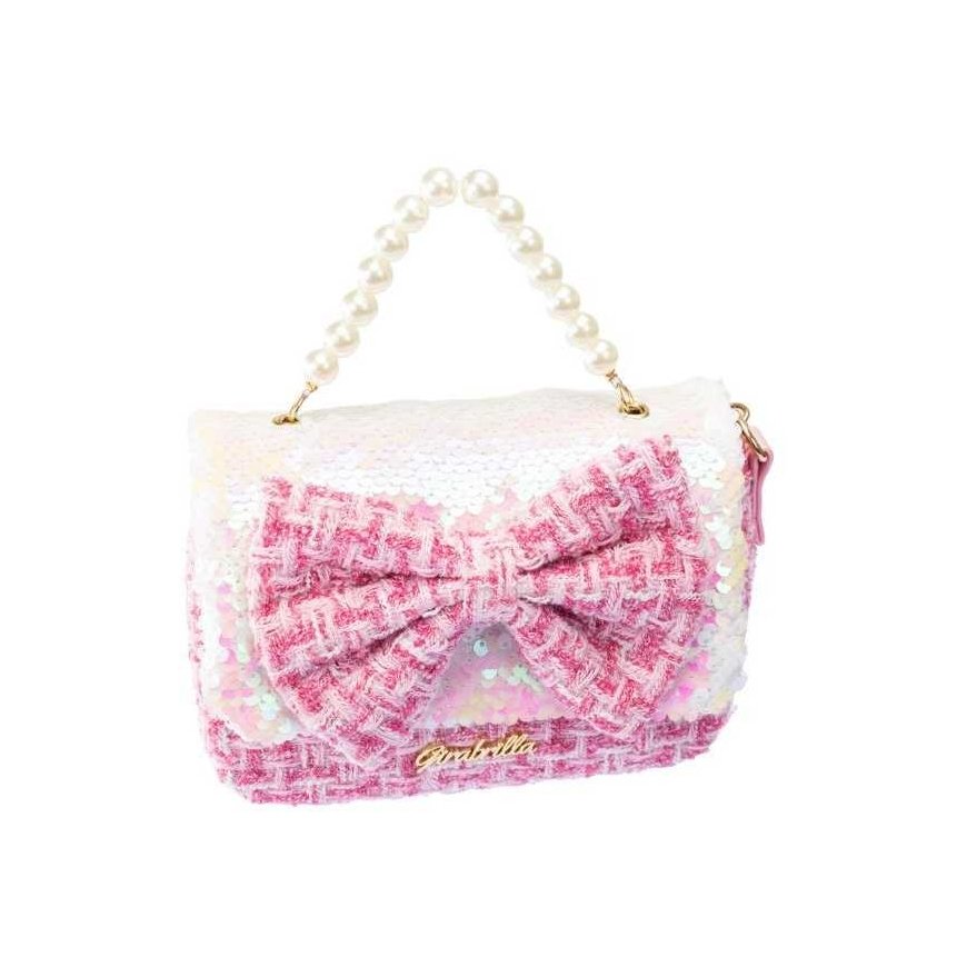 Dolce handbag with a ribbon GORGEOUS GIRABRILLA DOLCE HANDBAG WITH A RIBBON – A SPARKLING ACCESSORY FOR THE LITTLE LADY! Are you looking for a unique handbag that will capture every girl's heart? The Girabrilla Dolce handbag with a ribbon is the perfect combination of style, sparkle, and girlish charm! An elegant look with a charming ribbon. This trendy handbag delights with its elegant bra shape and large, decorative ribbon that gives it a unique character. Perfect for any occasion – from everyday walks to birthday parties. Color-changing sequins – magic in your hands! Special two-color sequins allow your child to play with a changing effect – just move your hand to discover a new color and create your style. Comfortable and practical. The handbag has a comfortable handle and an adjustable strap, so you can carry it by hand or over your shoulder. Inside, it will fit all the little things that every young lady wants to have with her at all times. Perfect as a gift. The Girabrilla Dolce handbag with a ribbon is a great gift for a girl – elegant, sparkling, and full of charm!
