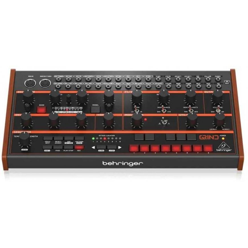 Pay 5x33.80€“Behringer GRIND” – a hybrid semi-modular synthesizer with 24 digital sound generators, an analog ladder filter, a 32-step sequencer, and a 16-voice “Poly Chain” function. Main features: a hybrid synthesizer with multiple types of oscillator generators and classic analog filters, allowing for a wide range of sound spectra. An especially versatile instrument that can produce spacious drum, solo, bass, or drone sounds. 24 digital oscillators featuring 15 “Mutable Instruments” sound generators. Synthesis models designed to create high, tonally rich sounds from solo string plucking to lush, spatial chords. 10 synthesizer generators, including: “Virtual Analog,” “Waveshaper,” FM, “Grains,” “Additive,” “Chords,” “Speech,” “Karplus,” “Hypersaw,” and “Wavetable.” 10 drum and noise generators, including: “Rain,” “Noise,” “Dust,” “Modal Strings,” FM drum, bass guitar, snare drum, “Hi Hat,” “Cowbell,” and tom. 4 advanced generators: DX7, TD-3 Bassline, Wave Generator, and Vox. Multifunctional timbre and harmonics potentiometers for more complex synthesis. Morph potentiometer allowing for smooth transitions in the character of selected sound sources. Classic 24 dB ladder filter with resonance control. Switchable low/high frequency filter mode. Easy-to-use, modern 32-step sequencer with the ability to save 64 internal memory slots. Advanced arpeggiator with multiple pattern modes, allowing for the creation of rhythmic and melodic instrumental parts. Analog LFO filter with the ability to switch between square and triangle wave types. 16-voice “Poly Chain” function allows for connecting multiple synthesizers to increase the number of voices and achieve a rich sound. Semi-modular design with default routing that requires no modifications. 20x12 input/output matrix provides various and flexible routing options. Comprehensive MIDI implementation with MIDI channel selection and voice priority.