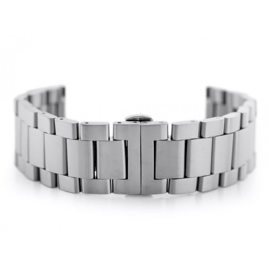 Steel bracelet with butterfly clasp for a high-quality silver-colored watch.