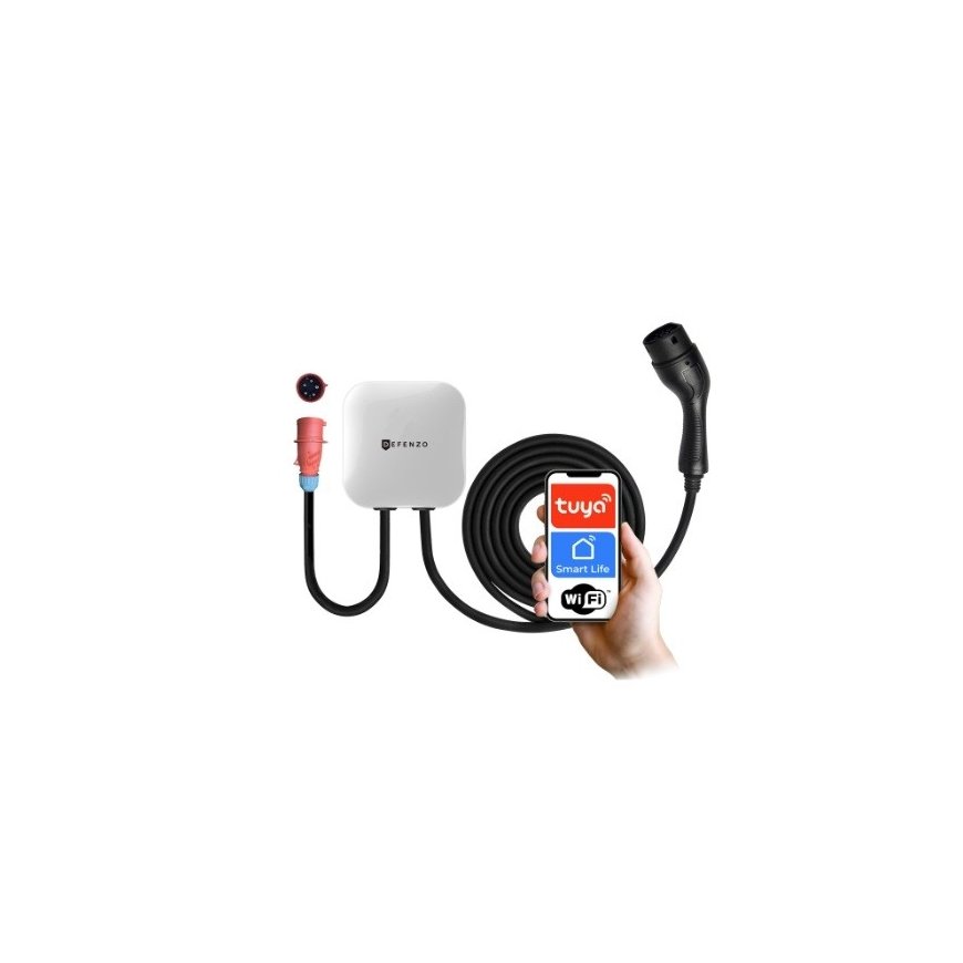 Defenzo Wallbox AC Home Smart charging station for home and garage – with app and RFID. The Defenzo Wallbox AC Home Smart is a modern alternating current (AC) charging station designed for convenient and safe electric vehicle charging at home and in semi-public places. Its compact, white-painted housing is perfect for garages, under shelters, or on the exterior walls of buildings. With an IP54 protection rating, the device is resistant to weather conditions and mechanical damage. The wall-mounted charging station features an RFID interface and control via a mobile app (Tuya or Smart Life), which allows for: remotely starting and stopping charging, setting charging schedules (e.g., night hours); adjusting charging power; viewing charging session history; managing access using RFID cards. Simple and intuitive control. The illuminated Defenzo logo and RGB diode indicate the current operational status of the device (R/G/B). Top-level safety The device is equipped with a smart protection system that protects against: overvoltage and voltage drops, overloads and overheating, leakage current (RCD Type B 30 mA AC + 6 mA DC), lack of grounding, and incorrect power frequency. Quick and easy installation The Wallbox wall-mounted charging device comes with a power cable with a CEE plug (the so-called red power source) and an integrated Type 2 charging cable with an IEC 62196 socket.
