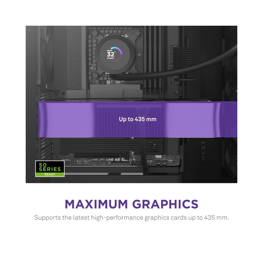 Handles GPUs up to 435 mm, giving plenty of space for top-tier graphics cards.