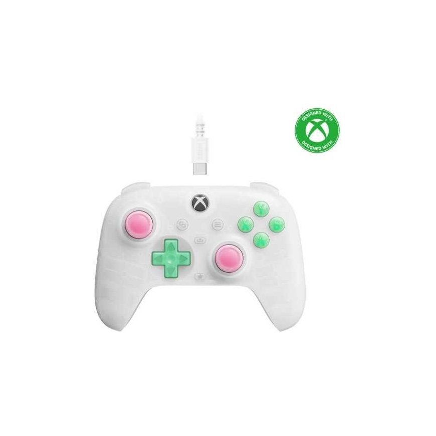 Pay 5x10.06€“8BitDo Ultimate Mini Wired Xbox Pad” clear white RET00505. A modern and versatile high-quality wired USB game controller with two analog sticks, a precise directional pad, and vibration feedback. Made from high-quality, pleasant-to-touch materials. Compatible with Xbox Series X|S, One, and Windows 10 and 11. X-Input mode. Modern design with traditional Xbox button layout. USB connection – 3 m cable. Precise analog sticks with Hall Effect technology – magnetic sensors eliminate analog drift, similar to professional Xbox Elite 2 esports controllers. Fire Ring vibration motors – interactive RGB lighting. Headphone jack. Compact and lightweight – 20% smaller and 10% lighter than the standard Ultimate C controller. Officially licensed by Microsoft. Beautiful packaging, perfect for a gift.