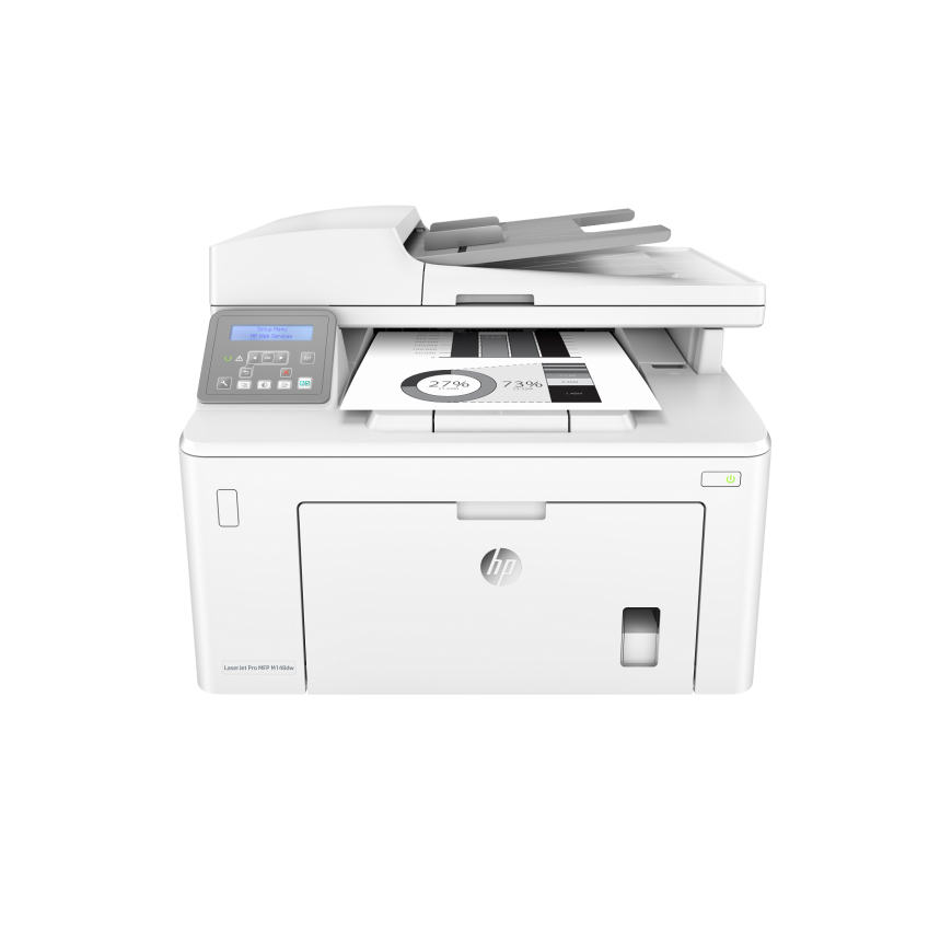 In the box: HP LaserJet Pro MFP M148dw Printer, introductory black toner (~1,000 pages), imaging drum (~23,000 pages), power cord, USB cable, setup guide, documentation