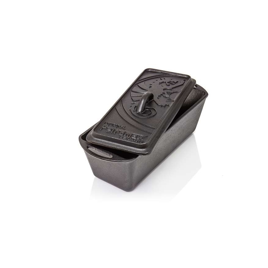 Cast iron for every occasion Made of cast iron, the loaf pan distributes and stores heat outstandingly. No matter whether you use it over an open fire or whether you place briquettes on the lid: The created all round warmth is impressive in the oven at home and when cooking outdoors. Thanks to the so-called seasoned finish, the loaf pan can be used right away.