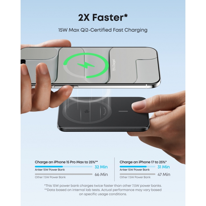 Anker A1665. Battery capacity: 5000 mAh, Wireless charging. Product colour: Black