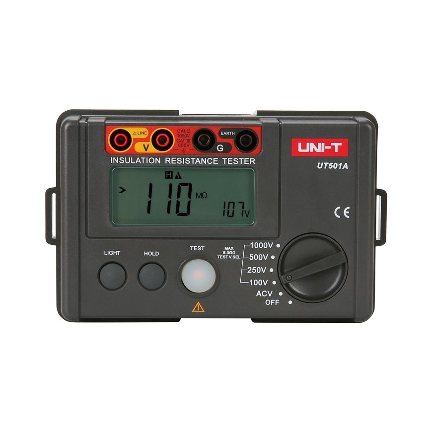 Pay 5x20.31€The UNI-T UT501A insulation resistance tester is a versatile device designed to accurately measure insulation resistance in electrical equipment and households. It can measure insulation between electrical circuits or between a circuit and ground. The UT501A offers measurements of insulation resistance, AC voltage, low resistance, as well as PI (polarization index) and DAR (dielectric absorption coefficient). Equipped with a 2,000-count LCD display, backlight function, overload indicator and automatic shutdown, the UT501A ensures safety, accuracy and convenience during operation. In addition, CE and UKCA certifications confirm the device's high quality and compliance with European standards.