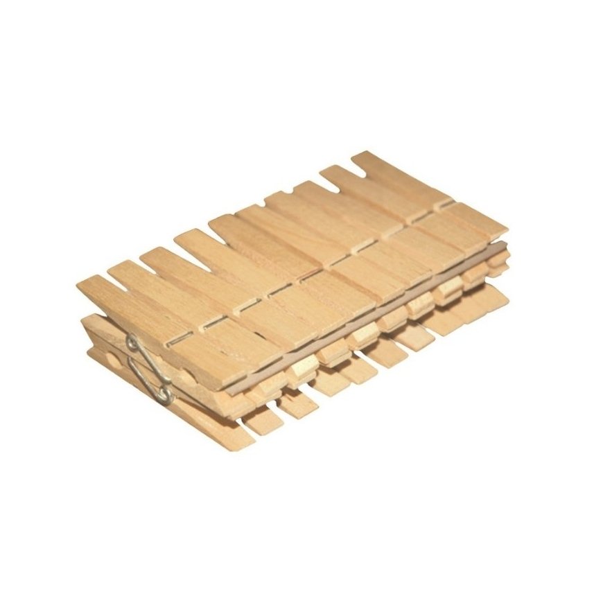 York Wooden Clothes Pegs 20 pcs, brown — a classic set of wooden clothes pegs for securely holding garments and textiles on a clothesline or dryer, suitable for indoor and outdoor use, natural eco-friendly material with a sturdy metal spring ensures resistance to wind and reliable grip, versatile size for different types of laundry.