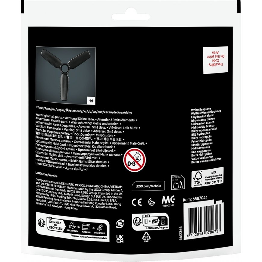 LEGO® Technic White seaplane takes boys and girls over 7 years old into the whirlwinds of play. The propellers of the vehicle can be spun using the gear on the roof.
