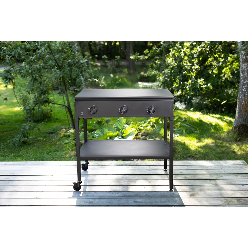 Pay 5x27.98€This metal cart is designed to support and serve as a movable platform for the Cozze G-900 Combo and G-900 Quattro gas grills. It makes moving the grill easier and provides additional space for accessories.