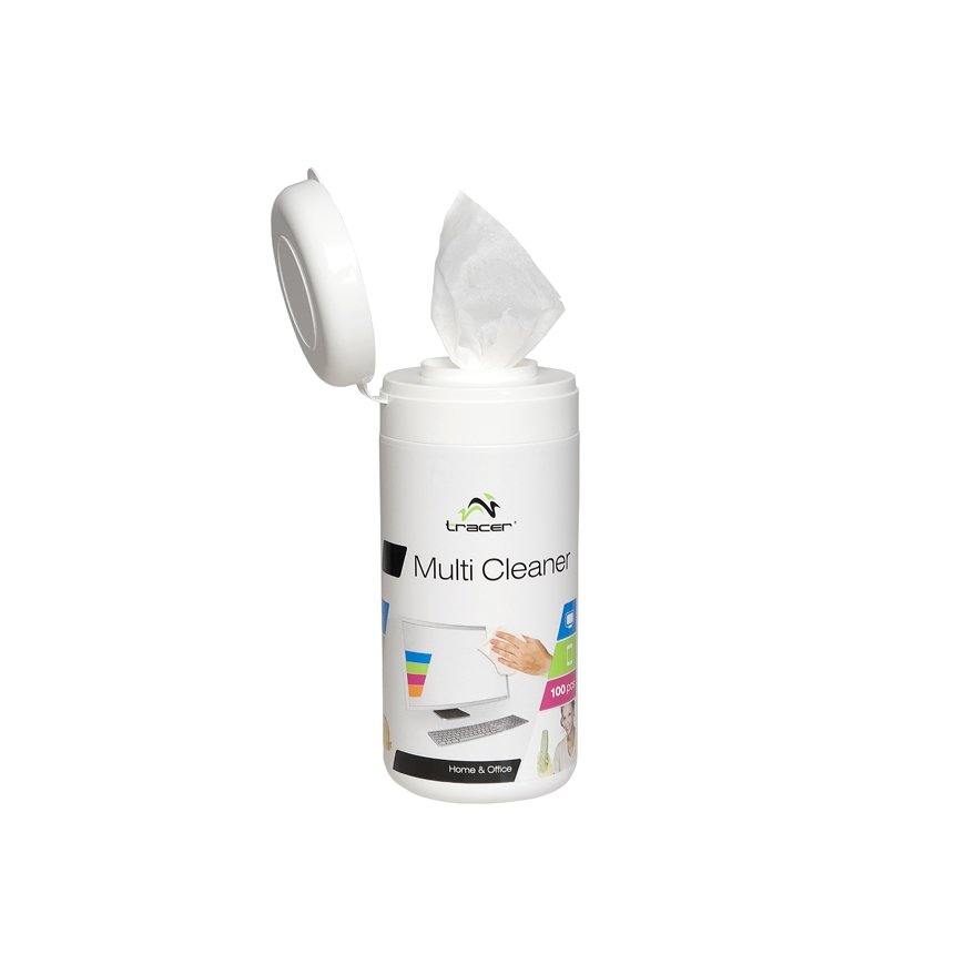 100 moistened wipes in a tube container to clean screens (monitors, TV).