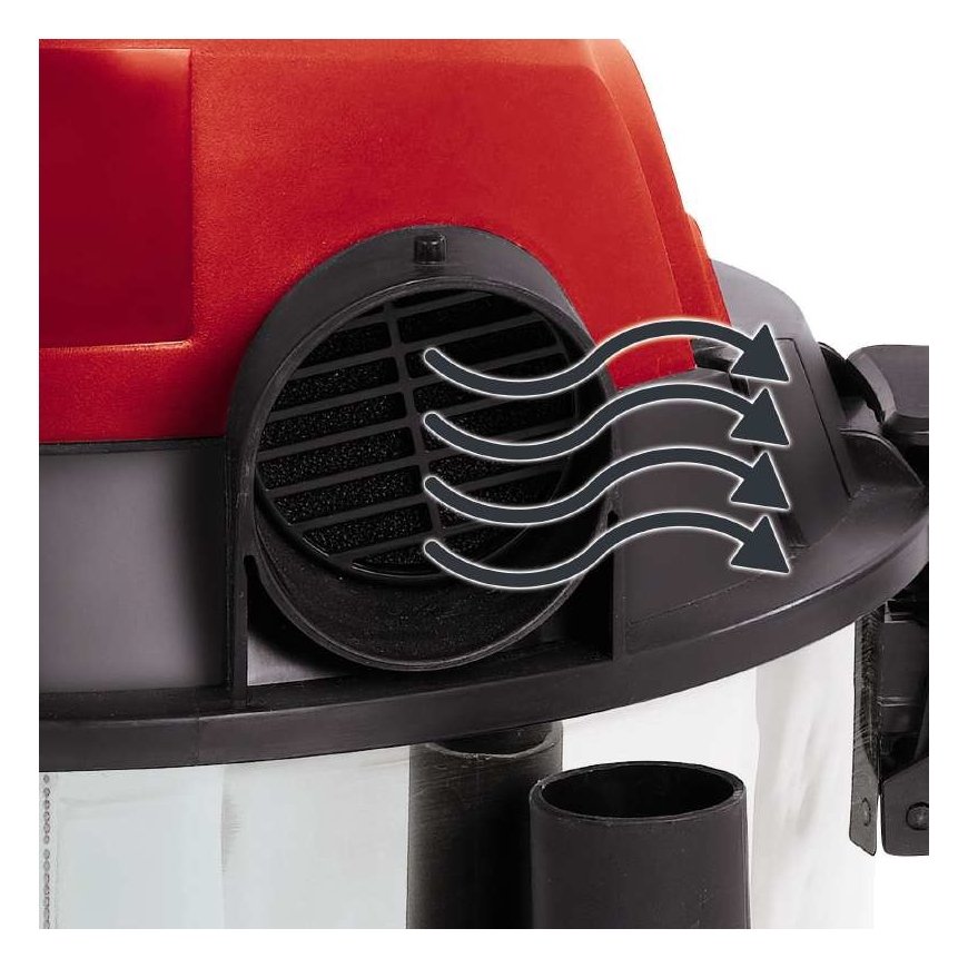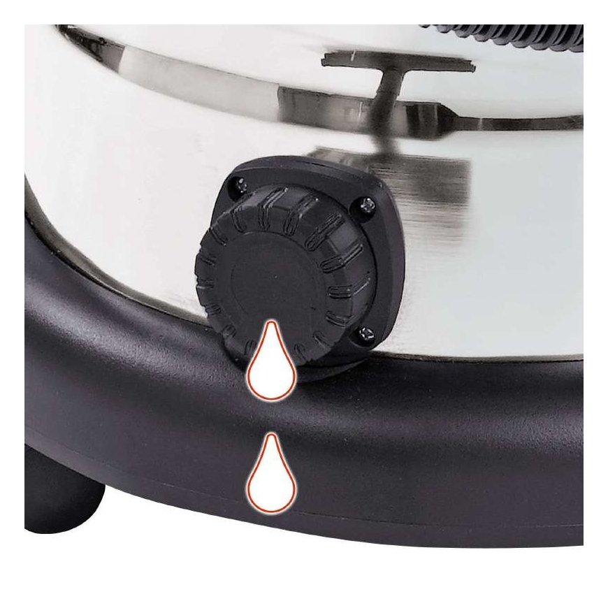 The TH-VC 1930 SA wet and dry vacuum cleaner is an indispensable helper which provides good service to the ambitious DIY enthusiast on cleaning jobs in the home, workshop and garage. Its stainless steel tank has a capacity of 30 liters for devouring both dirt and liquids, with a drain screw provided for the user-friendly and clean disposal of the vacuumed liquid. A practical blow connector is also provided. An integrated socket with automatic function and delayed switch-off enables this cleaner to be used as a vacuum extraction system for electric tools.