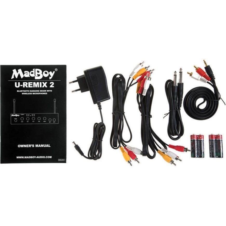 Pay 5x36.33€The Madboy U-Remix Wireless Karaoke Microphone pair conveniently combines wireless microphones, a USB / SD player and a Bluetooth mixer. Easily connect your computer, home stereo, and other home audio to your karaoke set for a great party. The device works with Bluetooth technology, which allows you to get rid of unnecessary wires and free the soul of a true performer!