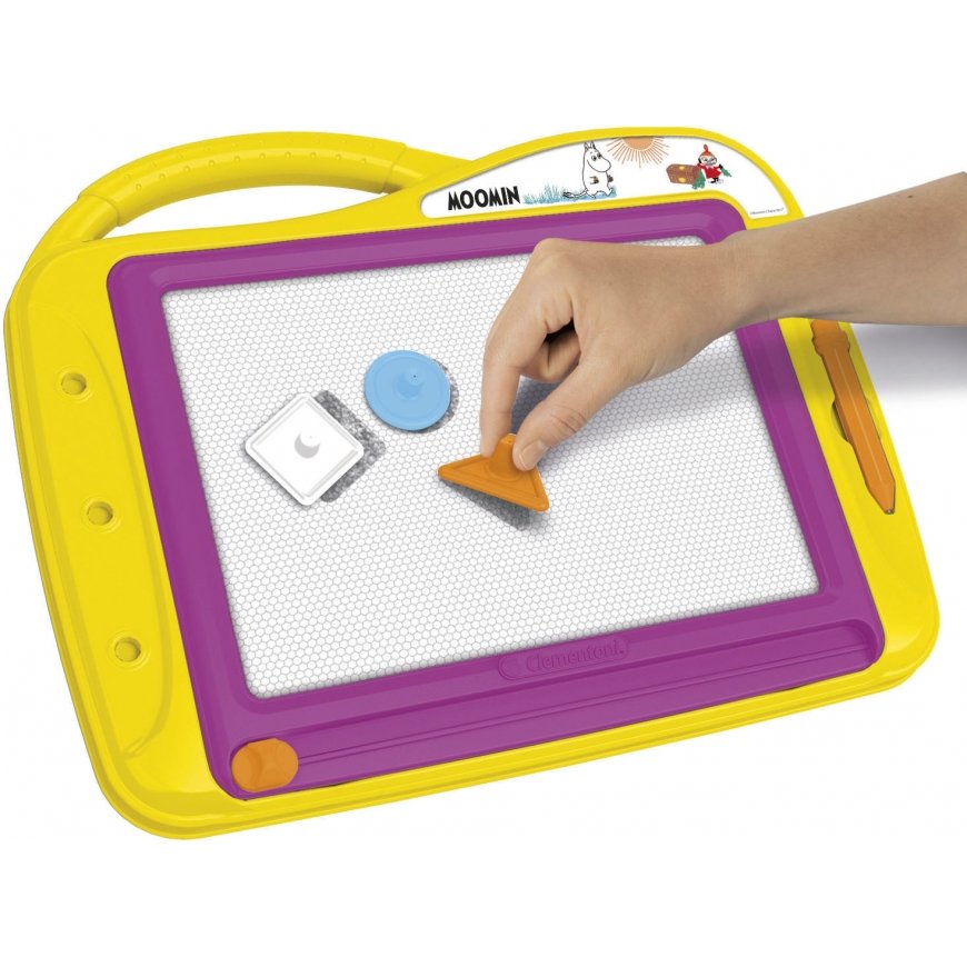 Let your imagination fly! Draw or stamp images on a magnetic drawing board, wipe the board clean and start over. The Moomin-themed drawing board features a pencil attached to a string, three stamps and a handy carrying handle. Age recommendation for over 4 year olds.