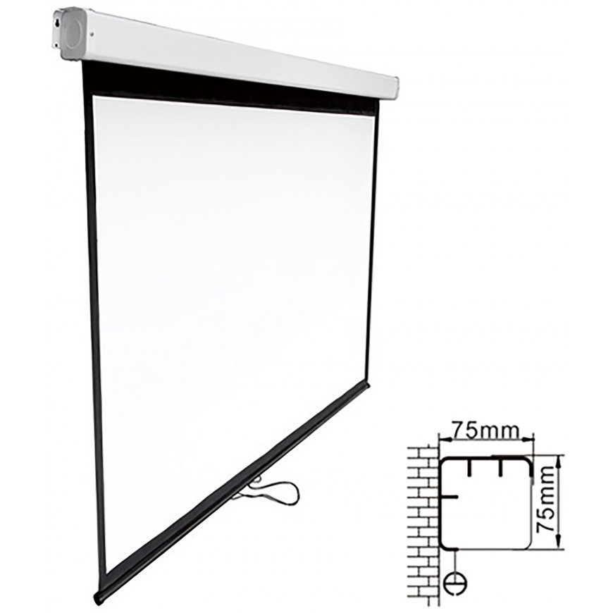 Pay 5x25.80€Affordable but high quality screen that is well suited for educational, advertising and home use. The self-locking fabric allows for different dimensions and can be mounted either on the wall or on the ceiling. The included drawstring makes it easy to pull the fabric down when mounted on top.