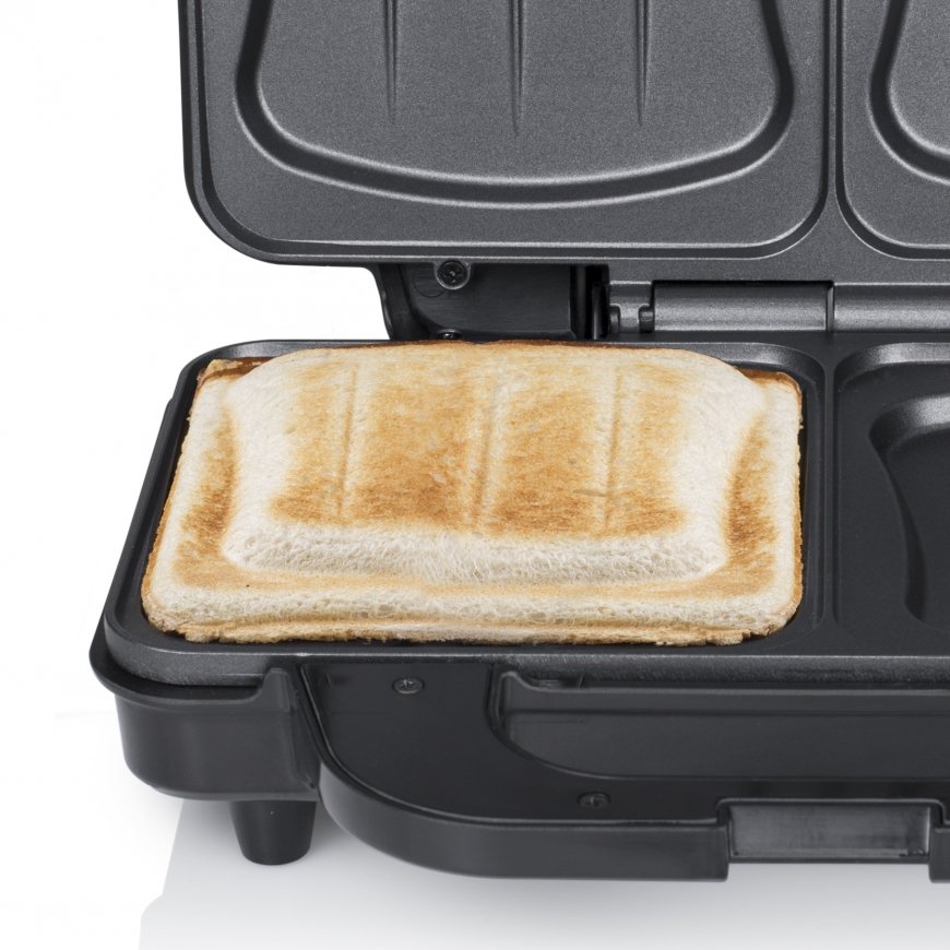 Easy to use The sandwich maker quickly reaches the right temperature thanks to 900W power. The sandwich maker is very easy to use: just plug it in and the indicator lights show you at a glance if it has reached the right temperature. The non-stick coating makes it easy to clean the sandwich maker in no time after use.
