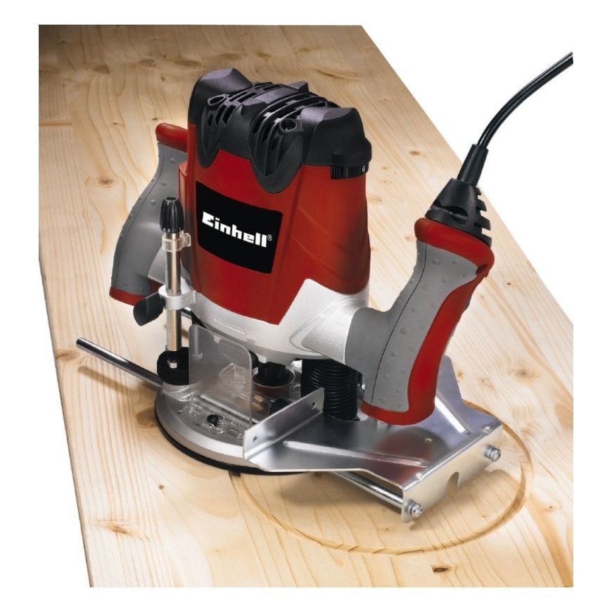 Using the electronic speed control, operation of the router can be adapted with optimum effect to the particular requirements of the material and cutter used. For quick and effortless tool change there is a spindle lock, while the well-balanced design lends the tool good stability. The clamp creates flexibility by permitting the use of cutters with a shaft diameter of 6 mm or 8 mm. A plastic insert on the foot protects the workpiece surface. Thanks to ergonomic soft grip handles the router is both pleasant and secure to hold. And when work is done, the power cord can be secured by cable clip and the tool put away neatly with a twist of the hand. Compass, parallel guide and copy sleeve round off the scope of the delivery.