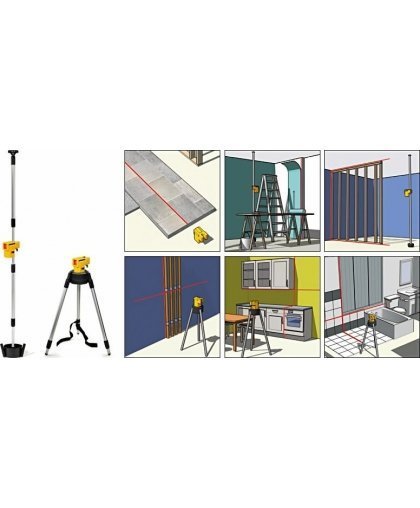 Supplied with a multifunctional tripod that allows you to place the laser at a height of 0.07 - 2.75 m for your personal preference. The tripod can be placed both in the tripod position and between the ceiling and the floor.