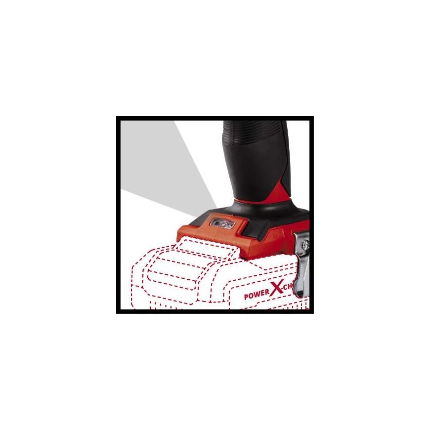 The Einhell TE-CD 18/48 Li-i-Solo cordless impact drill driver is more than just a helpful and powerful assistant in the home, workshed and garage. With its integral impact drilling function it is also designed for universal work on restoration and renovation assignments. Screwdriving, drilling and impact drilling are the key basic functions which make it equipped for every important task. As a member of the Power X-Change family it delivers its full power far away from the nearest socket, so it gives the user total flexibility. At the same time it is always ready-for-use thanks to lithium-ion technology with zero self-discharge. The two-speed gear unit provides a blow rate of up to 24,000 units per minute and delivers a force of up to 48 Nm to the desired point. Thanks to an ergonomic design and softgrip, the cordless impact drill driver is designed for exceptionally easy handling and ensures that you can work comfortably and without tiring, even on prolonged assignments. The single-sleeve 13 mm drill chuck enables you to fit the accessories you want to use quickly and easily. Optimum operation in dark areas is ensured by the integral LED lighting. The rechargeable battery and charger are available separately, for example as a practical PXC starter set in different performance levels.