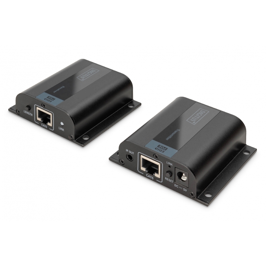 - Extends the maximum length for HDMI cables to up to 50 m via a simple network cable - Highest supported video resolution: 1080p / 60 Hz - Supports CAT 6, CAT 6A and CAT 7 network cables - Manual EDID switch - Allows you to set the resolution and audio format on the transmitter unit - HDMI Loop Out - Enables the connection of a local monitor to the transmitter unit - Supports PoE (Power over Ethernet) - therefore a power supply for the receiver unit is not required