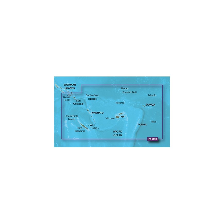 Coverage Detailed coverage of New Caledonia including Port de Muéo, Noumea, Port de Pouebo, and Baie de Yaté, as well as the isles of Ouvéa, Lifo, and Maré. General coverage of the southeastern Solomon Islands including Guadalcanal, San Cristobal, and the southern portion of Malaita. General coverage continues among the Santa Cruz Island, Vanuatu, Fiji, Tonga, Samoa, and American Samoa, including numerous detailed plans such as Port-Vila, Van., Suva, Fij., Nuku'alofa, Ton., Apia, Sam., and Pago Pago, Am. Sam.