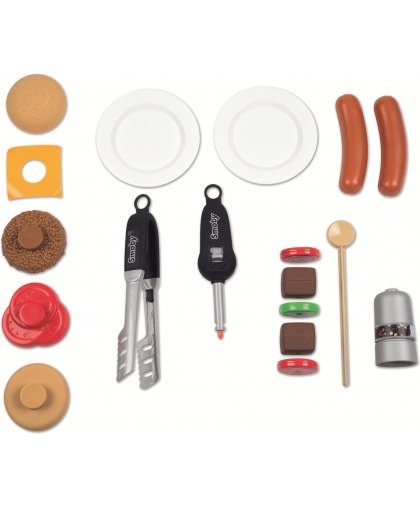With this grill you can help your parents with cooking! In summer weather, there is nothing better than grilling delicious meals for the whole family! The Smoby BBQ Grill has a grate and a cast iron grill, just like a real grill. However, be careful not to burn yourself when flames appear! Comes with 18 accessories, including two plates, a collapsible burger, a skewer consisting of pieces of meat and vegetables, two sausages, a gas lighter, pliers, and a salt and pepper mill. With these barbecue tools, you have everything a real barbecue chef needs! The play grill allows your child to develop their motor skills.