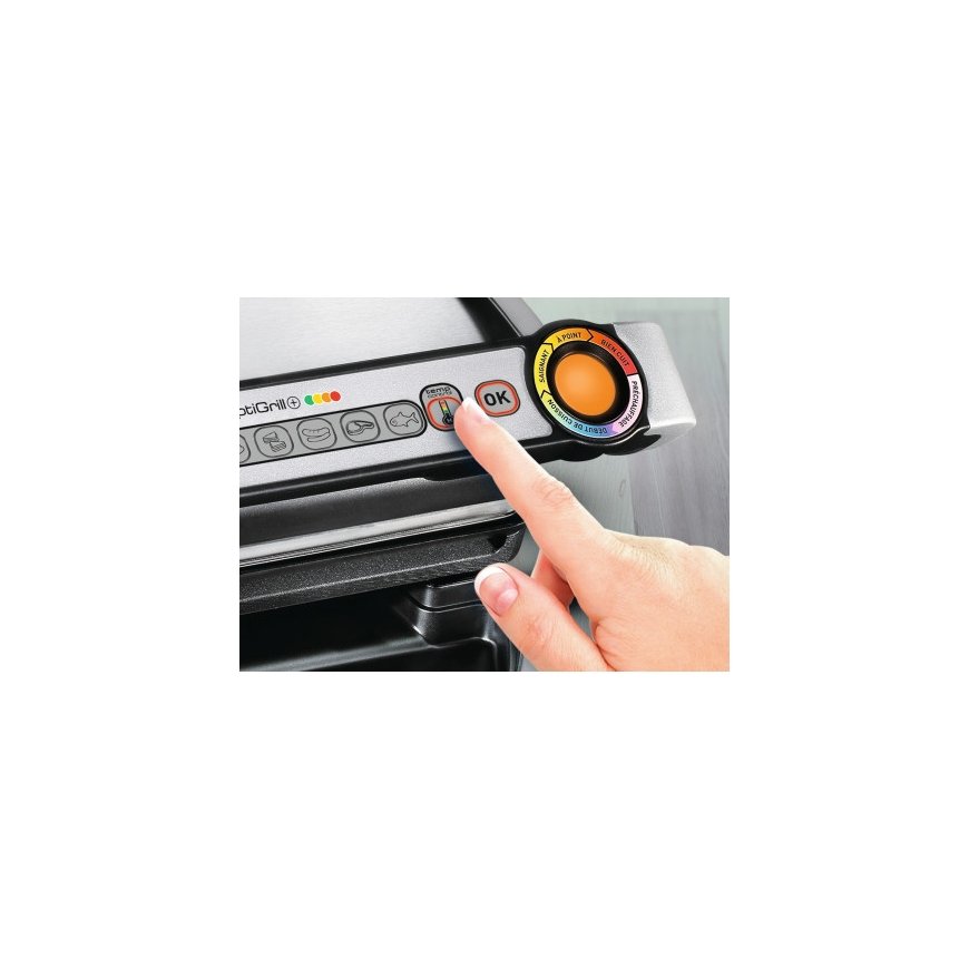 With OptiGrill+, our ultimate innovation, smart technology makes for delicious cooking. Featuring "Automatic Sensor Cooking" technology, time and temperature are automatically adjusted to the thickness and number of items placed on the grill, based on 6 cooking programs (Burger, Poultry, Sandwich, Sausage, Red meat, Fish) and a frozen food mode. At the same time, an indicator light allows direct monitoring: Purple for preheating, blue then green at the start of cooking, yellow when the food is rare, orange for medium and red for well-done. Perfectly adaptable to everyone's tastes, simply lift up the lid to pick up your meat when it's ready and leave the rest to carry on cooking! The additional manual mode with 4 adjustable temperature levels allows you to cook anything and is perfectly adapted to fruits and vegetables, cooking them just the way you want.