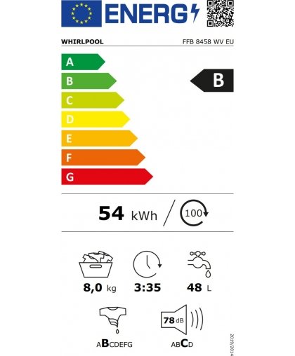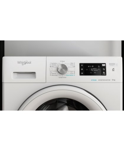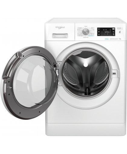 Maksa 5x77.80€Whirlpool FFB 8458 WV EU front-loading washing machine Fresh Care + series washing machine with a filling volume of 1-8 kg and a durable inverter motor.