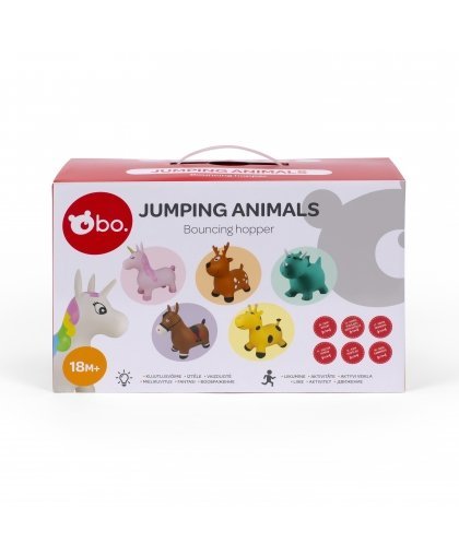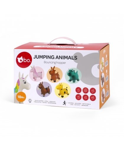 because bouncy animals encourage movement and help develop balance while having fun jumping around. The animals have large ears or horns that are easy to hold on to and sturdy legs for stability! Fun bouncers can be used both indoors and outdoors. Choose the one you like the most and jump! The kit includes a pump. The maximum allowed weight is 50 kg. Size - 58 x 22 x 50 cm.