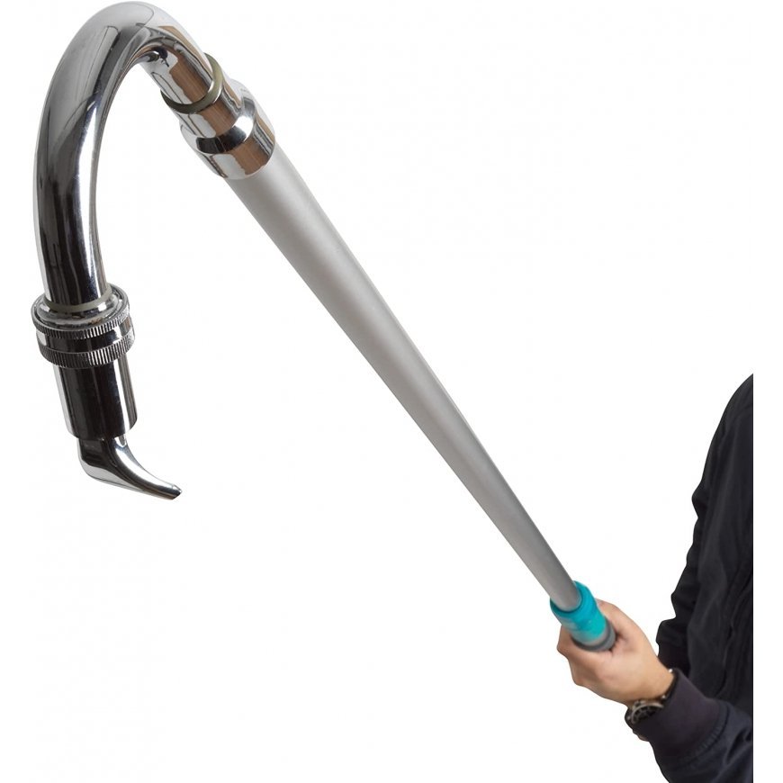 Super easy to use, the gutter cleaning wand simply attaches to a standard garden hose and directs water through the nozzle.