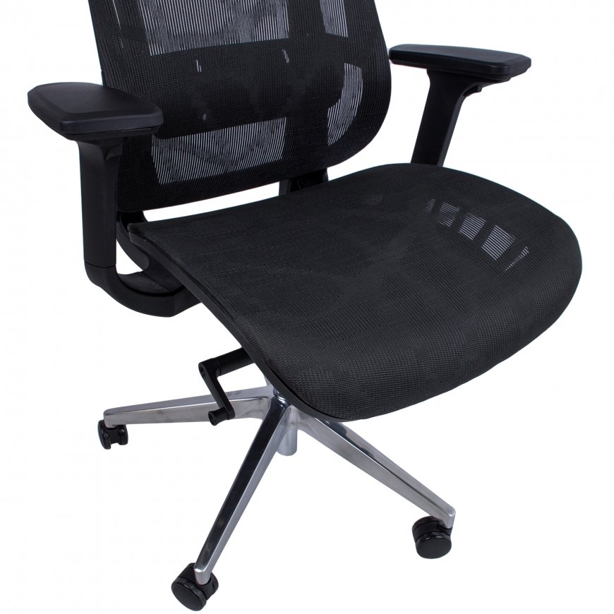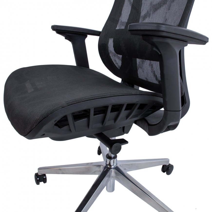 Töötool FLEX must. Ergonoomiline töötool FLEX on mugav ja vastupidav. Tool on kaetud polüestervõrkkangaga, 50 000 Martindale’i. Toolil on multifunktsionaalne mehhanism, seljatoe kaldenurk on lukustatav neljas positsioonis. Kiikejäikus on reguleeritav vastavalt istuja kaalule. Reguleeritav nimmetugi. Istme sügavus on reguleeritav. Istme kõrgus on reguleeritav gaasamordi abil. Mustast plastikust käetoed on pehme polüuretaankattega. Käetugede kõrgus (17-24cm), sügavus ja pöördenurk on reguleeritavad. Peatoe kõrgus ja kaldenurk on reguleeritavad. 5-haruline jalarist on poleeritud alumiiniumist, R35cm. Toolil on plastikrattad, 60mm. Tooli kõrgus on 116-126cm, istme laius 50cm, sügavus 50cm, istme kõrgus 48-57cm. Toote mõõdud on 70x70xH116-126cm. Tooli kaalupiirang on 130kg.