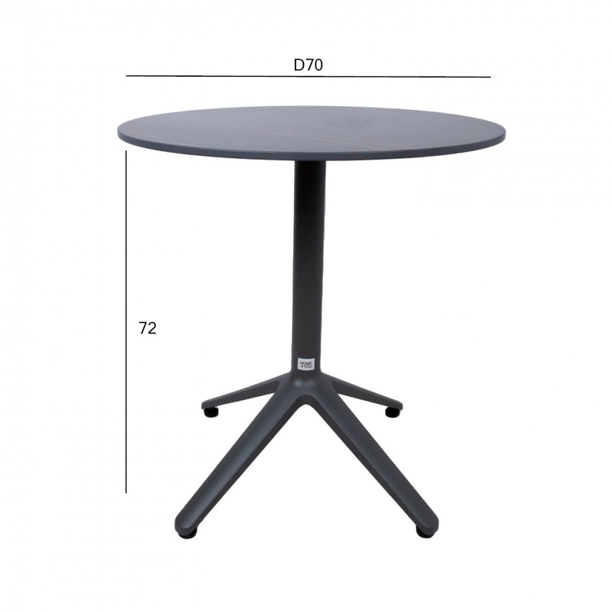 Laud BEIDA D70xH72cm kiviplaadiga. Paagutatud kivist (sintered stone) lauaplaadi valmistamisel on kasutatud innovatiivset tehnoloogiat, mis jäljendab loodusliku kivi moodustumise protsessi sügaval maakoores. Kaoliini ehk portselansavi osakesed töödeldakse 1200 kraadises kuumuses, mille tulemusena moodustub materjal, mis oma omadustel ja välimuselt sarnaneb naturaalse kiviga. Lauaplaat on küll õhuke, kuid väga tugev (suhteline kõvadus Mohsi skaalal 7), kulumiskindel, talub hästi kõrget temperatuuri ja erinevaid ilmastikutingimusi, ei ima plekke ja seda on väga lihtne puhastada ja hooldada. Kuna keemilisi sideaineid ei ole kasutatud on materjal hügieeniline. TÄHELEPANU! Vältige lööke, põrutusi ja kukkumist. Alumiiniumist lauajalg on viimistletud halli pulbervärviga. Lauajala tugiposti mõõdud D60x1,5mm, 4-haruline jalg 68x68cm, lauaplaadi alusrist 48x48cm. Lauaplaat ei ole alla klapitav. HOIUSTAMINE: suvehooaja lõppedes soovitame aiamööblit hoiustada siseruumides. Puhastage ja kuivatage mööbel enne hoiule panekut. Kasutage hoiustamiseks jahedat, kuiva ning hea ventilatsiooniga.
