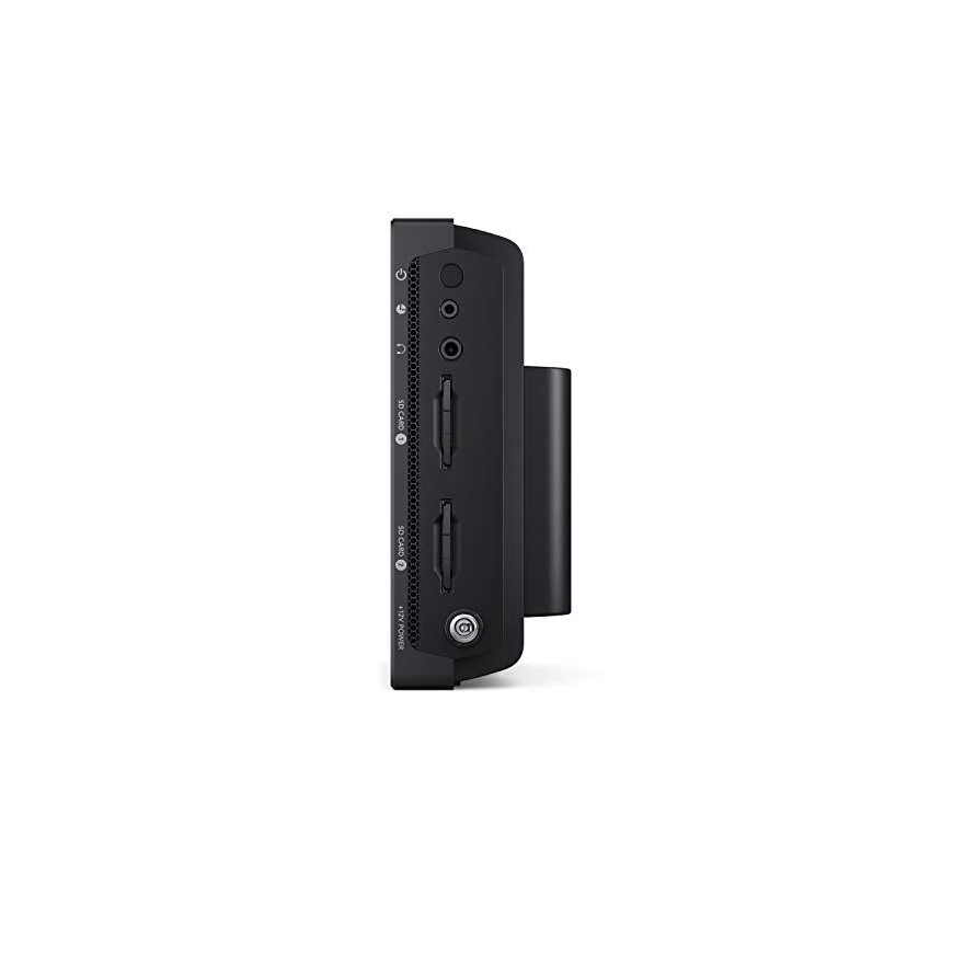 The monitor's on-screen interface allows you to adjust settings and access important features such as histogram, waveform, vector targeting, and many more tools. There is also a light on the top of the monitor to indicate when it is working and recording. There is a 12 V power adapter to power the monitor. It also has dual battery slots on the back so the monitor can be powered using Sony's L-series type batteries.