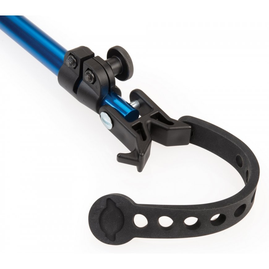 The Park Tool handlebar holder prevents the front wheel from turning when the bike is on the service rack. This makes working easier and safer, e.g. when bleeding the front brake. Adjustable length and swivel and swivel heads. The brackets fit round tubes and most aerodynamically shaped tubes