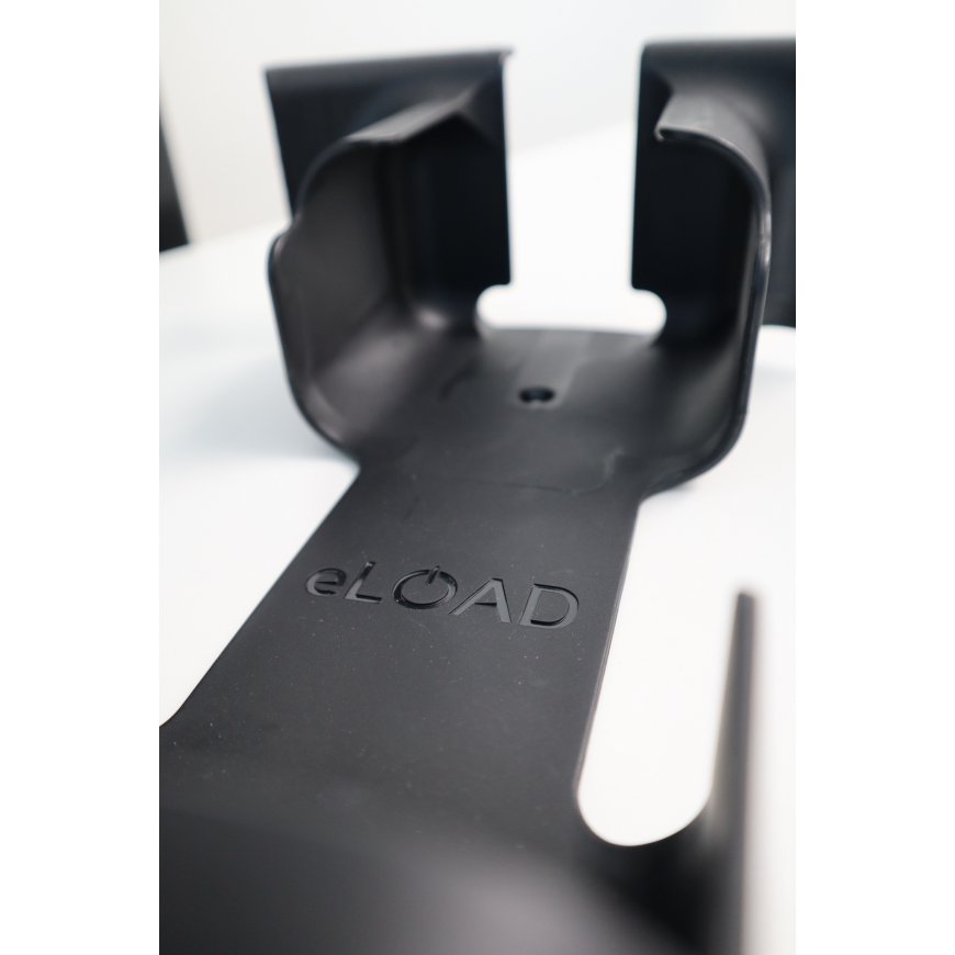 Information about the wall bracket for the eLOAD charging device. The wall mount is an effortless and stylish choice for storing the eLOAD charger and its cable.