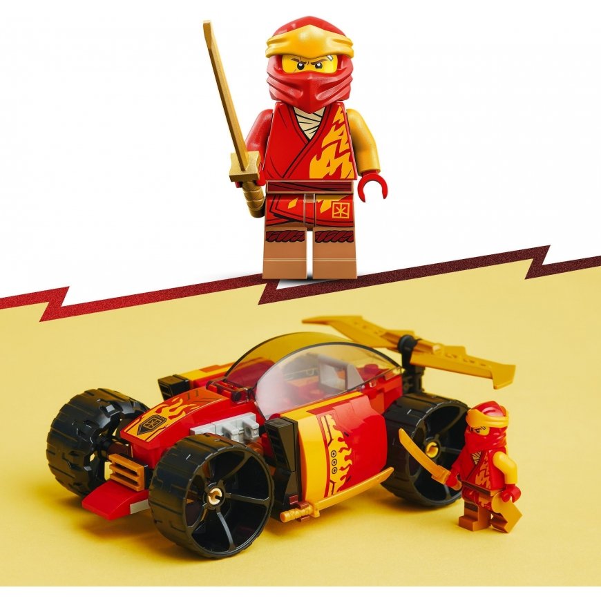 • LEGO® NINJAGO® auto – lapsed saavad Kai ninjavõidusõiduauto EVO (71780) mängukomplekti abil lavastada põnevad võidusõidud • Üks minifiguur – selle ninjamänguasjaga on kaasas Kai minifiguur, kes on relvastatud kahe kuldse katanaga ja kelle saab ninjaauto juhtimiseks asetada sõiduki kokpitti • Ninjamänguauto – lapsed saavad mudelit täiustada, muutes maastikusõiduki nelja ratta vahetamise teel tänavavõidusõiduautoks • Rohkem ninjaseiklusi – otsi üles ka Lloydi lahingurobot EVO (71781), Cole’i maadraakon EVO (71782), Jay reaktiivlennuk EVO (71784) ja teised LEGO® NINJAGO® valikusse kuuluvad komplektid • Ehita ja mängi – see 94-osaline vastupidav mängukomplekt võimaldab alates 6-aastastel loomingulistel lastel ehitada ja samal ajal korraldada seiklusi omaette või koos sõpradega • Lõbus kingiidee – see mänguauto on 5 cm kõrge, 14 cm pikk ja 10 cm lai ning sobib lastele nii sünnipäevakingiks kui ka ootamatuks üllatuseks • Uus viis ehitada – rakendus LEGO® Builder juhendab lapsi intuitiivsel ehitusseiklusel. Lapsed saavad salvestada komplekte, jälgida edenemist ning suumida ja pöörata mudeleid ehitamise ajal 3D-vaates • Suurepärane kvaliteet – LEGO® klotse on üle kuue aastakümne valmistatud nii, et need oleksid alati hõlpsasti ühendatavad • Tagatud ohutus – LEGO® ehitusklotsid vastavad rangetele üleilmsetele ohutusstandarditele
