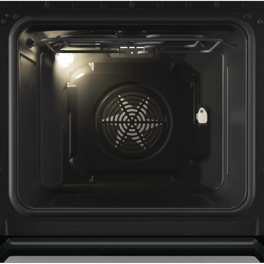 The oven door has a Soft Close feature, it has a hinge that closes the door, slowing down its closing. Sophisticated and safe to use, the door never slams shut.