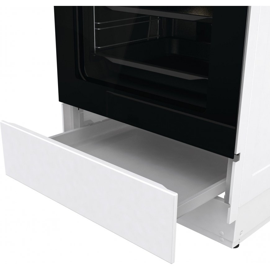 The safety of the stove is increased by the tight double-glazed oven door, thanks to which the surface temperature of the stove is always low. The induction hob does not heat up without a pan and switches off when the pan is removed from the cooking area. If liquid gets on the controls of the level, the level switches off automatically and if the cooking pot is empty, the level recognizes it and switches itself off. The child lock is always included. It can also be switched off if necessary. The induction hob also has a maximum heating time, if the power does not change, the hob will turn itself off automatically after a certain time. This time is 3-10 hours, depending on the disc and power. In the lower part of the stove, there is a drawer that opens and closes easily, e.g. for heating tins or frying pans.