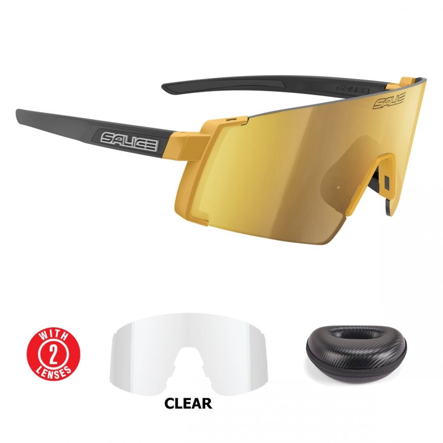 Maksa 5x15.80€Salice 027 Gold RW Gold sunglasses are Salice's newest model. The glasses with 100% UV protection are very light and fit well. The frameless model is perfect for cycling, for example, as the field of vision remains free. Thanks to the thin temples, the glasses fit well with the bicycle helmet. The replaceable nose holder and the inner parts of the buckets are made of rubber, thanks to which the glasses stay securely in place even when going hard. The exterior of the polycarbonate RW (rainbow) multi-layer lenses removes not only sunlight but also reflections from water, ice and snow, and the coating on the inside prevents glare.
