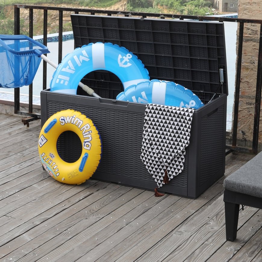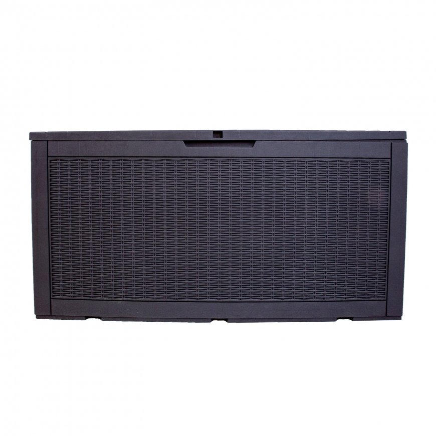 Säilituskast SAYA hall. Ruumikas säilituskast pakub mugava lahenduse vajaliku hoiustamiseks. Kastil on lukustatav kaas, mis hoiab esemed kaitstuna. Kasti viimistlus meenutab rotangi disaini. Toode on heitlikes ilmastikuoludes vastupidav ning UV-kaitsega. Plastikust konstruktsioon on tugev ning ei mulju kergesti. Materjal ei roosteta ega kooru. Toodet on lihtne puhastada ning kokku panna. Toote mõõdud on 122x54,5xH62,3cm.
