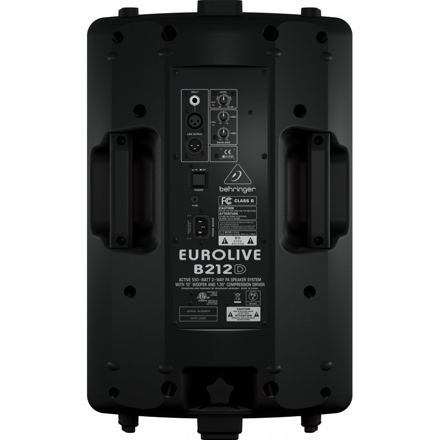 Behringer Eurolive B212D. Kõlari tüüp: kahesuunaline, Kõlari paigutus: Põrand, Lauapealne/raamaturiiul. RMS-nimivõimsus: 280 W, Näivtakistus: 8 Ω, Sagedusvahemik: 65 - 20000 Hz. Toote värv: Must. Toiteallika tüüp: Vahelduvvool, AC-sisendpinge: 240 V, AC-sisendsagedus: 50 Hz. Laius: 345 mm, Sügavus: 270 mm, Kõrgus: 550 mm