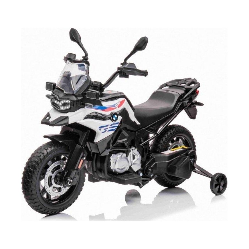 Specification Engine BMW F850 GS Engine 2x35W Battery 12V/7Ah, Wheels Foam EVA wheels, Diameter 33 cm, Width: 9 cm Gears Free start, Front 2 speeds, LED lights, Front, Equipment Sound panel Loaded tunes, USB, AUX, Start button , Seat size 31 x 19 cm, Dimensions Vehicle size Length 112 cm, Width 38 cm, Height 77 cm, Vehicle weight 15 kg, Box size 109 x 39 x 55 cm, Box weight 19.5 kg, Maximum load G clearance 30 Kg 1.1 cm Accessories manual, charger, screw-on auxiliary wheels.