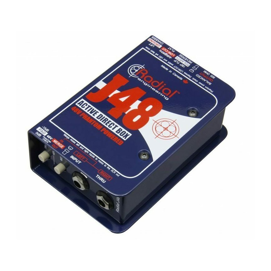 Maksa 5x53.80€The J48 is an active DI box optimized to withstand extreme electrical current pulses without distortion. Preserves the natural sound of the instrument. Works with 48V Phantom power.