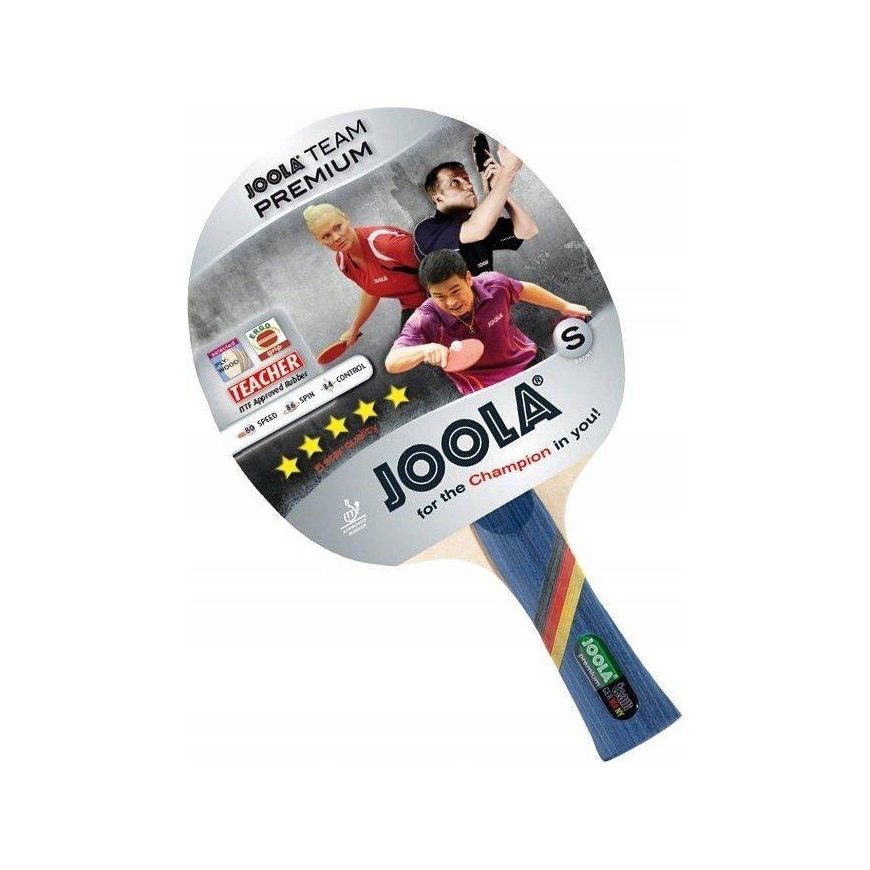 Table tennis racket JOOLA Team Premium (52002) Do you want to play table tennis even better, improve your game skills and have a great time? Take it to the next level and practice your table tennis with a paddle from the famous brand JOOLA! The JOOLA Team Premium table tennis bat is ideal for players who have played many sets. The equipment ensures the game while maintaining very good spin and speed. It will meet the high expectations of every table tennis lover. Specifications: Lightweight Concave Handle with Ergo Grip Technology Wood: 5 Layer Foam: 2.0mm Handle: Concave Shaping: Teacher Speed: 8.0/10 Spin: 8.6/10 Control 8.4/10 Quality Grade: ★★ ★★★ international TTF approved by the Tennis Federation) Racket weight: about 159 g Gallery