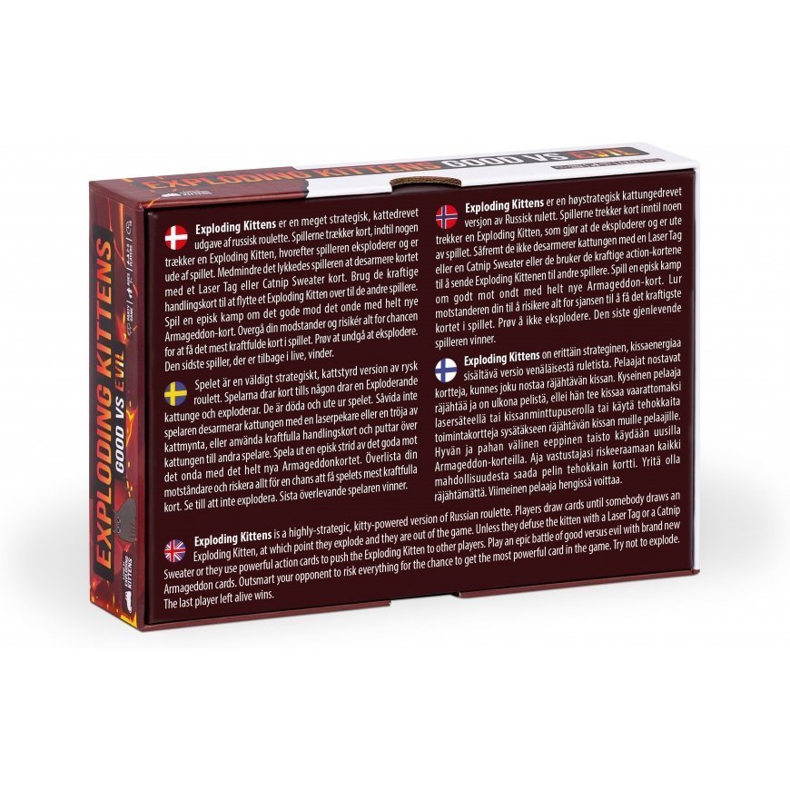 Exploding Kittens is a highly strategic, feline energy version of Russian Roulette. Players raise cards until someone raises an exploding cat. The one in question explodes and is out of the game, unless the cat is rendered harmless by a laser