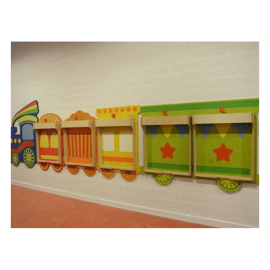 The system has 5 frames for boards . Taking one out and putting the other in takes less than a minute. The teacher can freely exchange aids between classes, choosing, for example, toys from a certain category: sensory, dexterity, mathematical, etc.
