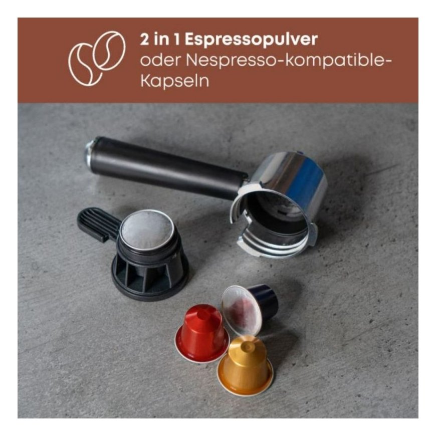 Kaks ühes - ProfiCook® käpaga espressomasinaga PCESKA1266 saab valmistada espressot pulbrist või Nespressoga ühilduvate kapslitega.