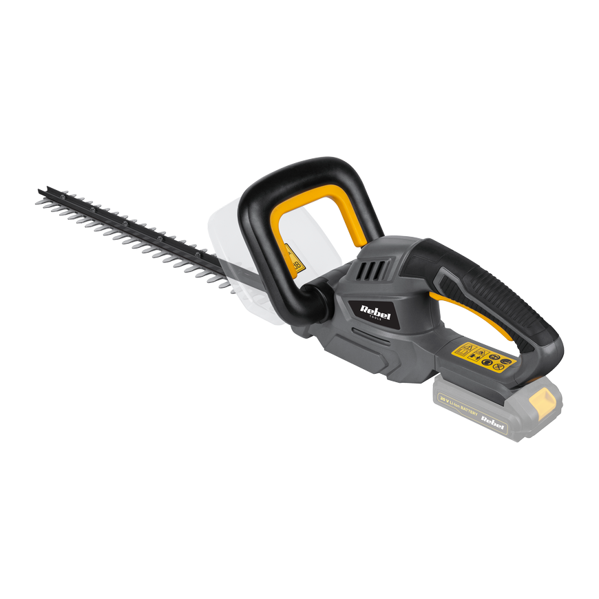 ----------- TECHNICAL DATA ----------- Battery: 20V; 2 Ah, lithium ion (RB-2001) Charging time: 1 - 1.5 hours Working time: up to 30 minutes Mains charger: 21V; 2.2A (RB-2001-CH) Travel speed without load: 1400 strokes/min. Blade length: 580 mm Distance between teeth: 14 mm Weight: 2.5 kg The set includes: blade cover, instruction manual ----------- Sound pressure level LPA: 81.4 dB (A), K = 3 dB (A) Sound power level LWA: 92.4 dB (A), K = 3 dB (A) Hand and arm vibrations: 2.401 m/s2 K=1.5 m/s2