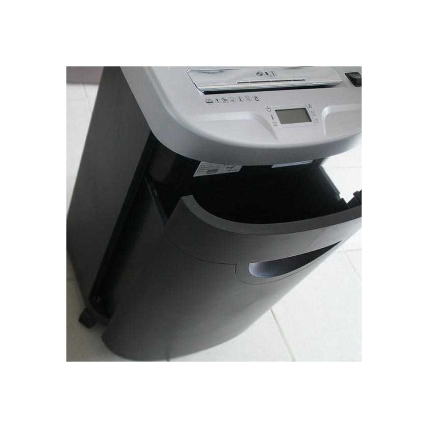 A high-quality shredding machine with an attractive design with a favorable price-quality ratio. Suitable for shredding 230mm wide documents. The shredder has a Safe Touch safety feature that stops the machine when your hand touches the input opening. LCD screen to check activated functions. The unit is standard equipped with an automatic start/stop system, a reverse gear, a thermal motor fuse against overheating and an overflow box alarm. Occasionally, staples and a paper clip can be chipped. Separate entry for credit cards or CDs. Quiet operation of the machine - 58 dB. The waste container with a volume of 35 l is easily emptied. Degree of secrecy according to decree no. 528/2005 – D – confidential. Paper inlet: 230 mm Cutting width: 3.8x40 mm Shredding speed 0.05 m/s Max. sheet shredding capacity: 17 A4/70g m2 Max. sheet shredding capacity: 15 A4/80g m2 Contract shredding: yes Shred paper clips: yes Credit card shredding: yes CD shredding: yes Waste container volume: 35 l Automatic start/stop: yes Motor thermal fuse: yes Motor power: 300W Dimensions: 390 x 305 x 645 mm Weight: 18 kg